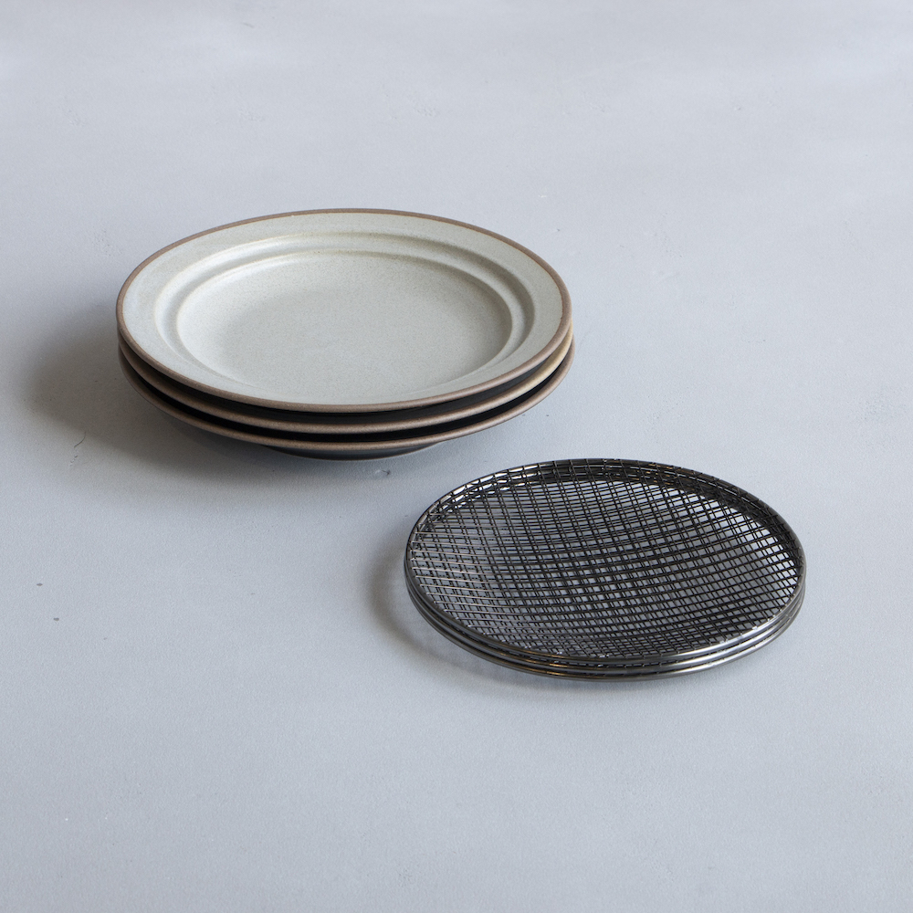 This plate combines Mino ware from Toki City, Gifu Prefecture, with Tsubame City, Niigata Prefecture’s metalworking expertise. It blends traditional warmth with modern design, suitable for daily meals. The integrated netting allows for versatile use, while gold or black options offer distinct aesthetics. Crafted for convenience, it’s easy to stack and clean, ensuring a stress-free dining experience.