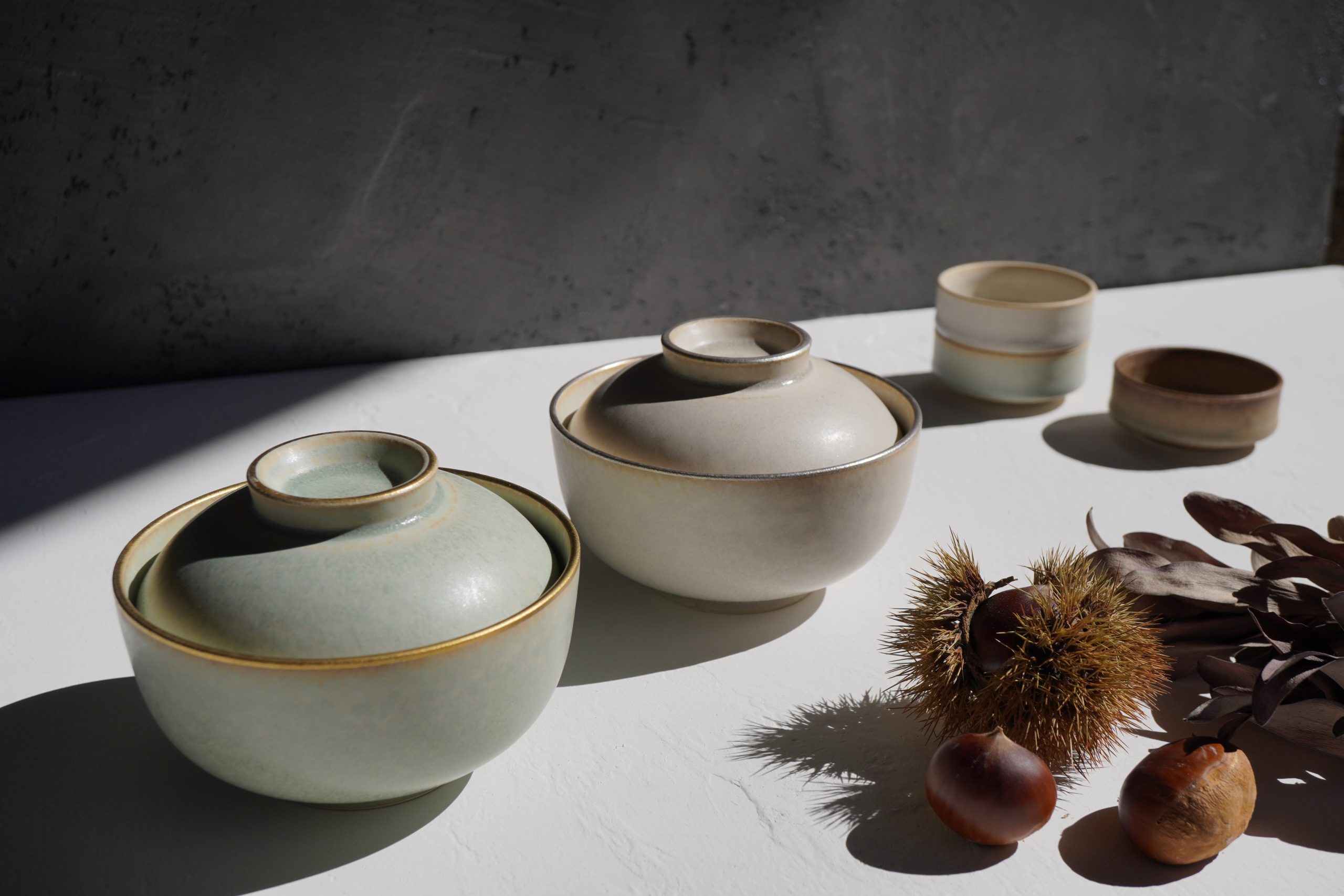 Silver lines delicately adorn the “haku,” while gold lines grace the “sui.” Pure silver and pure gold are employed without compromise to achieve a matte and elegant sheen. Though just two lines, they represent the meticulous craftsmanship of an artisan, dedicated to perfection in every millimeter. All for the pursuit of harmonious beauty. The vessel exudes a dignified appearance befitting a culinary kimono. Lidded dishes exude luxury, as removing the lid during a meal unveils a secret to enjoying both beauty and food.